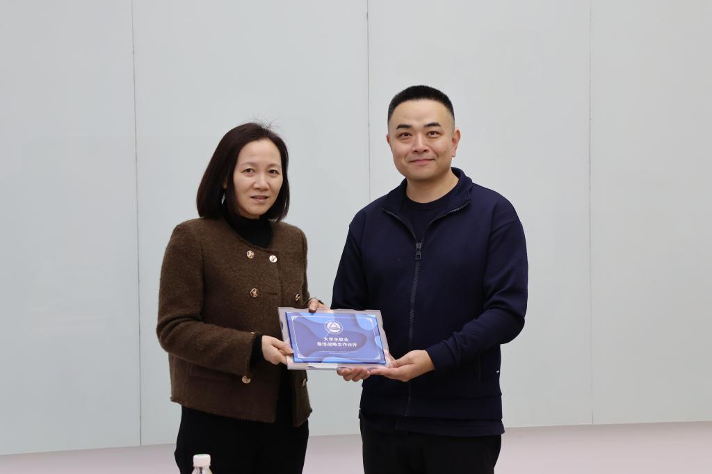 程捷音颁发“大学生就业最佳战略合作伙伴”纪念牌