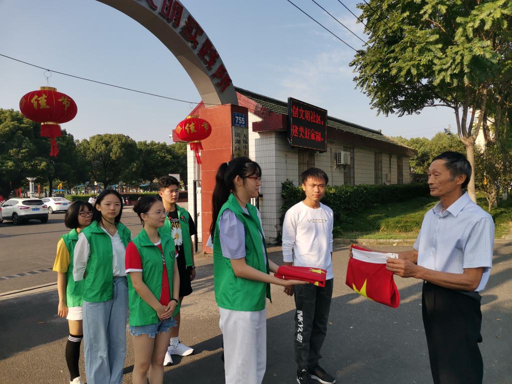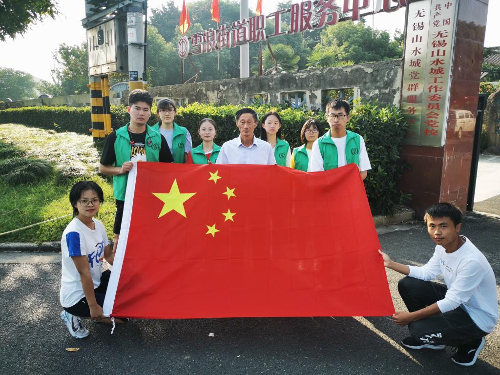 2020级基地班同学来到惠山区一所小学,在简朴庄严的交接仪式后,鲜艳的五星红旗在校园上空冉冉升起,晴空之下更显鲜亮夺目。2020级生物技术专业的十余位同学来到雪浪派出所,看到假期依然坚守岗位、一丝不苟工作的警察同志们,他们怀着深深的敬佩之情,与警察同志共同升起了崭新的国旗,并在国旗下合影留念。2019级酿酒专业的郎绪涛同学是世界杯官网国旗班的一员,这次他带领本专业同学来到雪浪街道服务中心,向其赠送崭新的国旗,并举行了庄重的升旗仪式,看到迎风飘扬的五星红旗,同学们心潮澎湃。经过同学们的努力,8支队伍一共为10家单位更换了11面国旗,大家以独特的方式为祖国庆生,祝福伟大祖国更加繁荣富强。