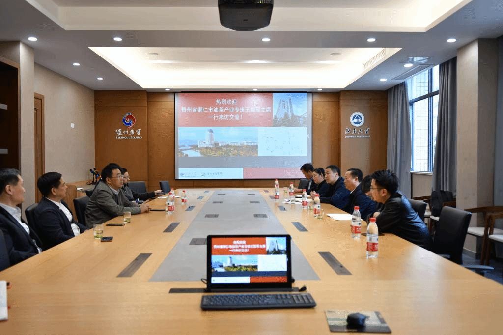11月19日下午,贵州省铜仁市政协副主席王能军携茶油产业专班、企业代表及技术专家一行来访世界杯官网。世界杯官网院长许正宏教授、药学院史劲松教授热情接待来访并座谈。
