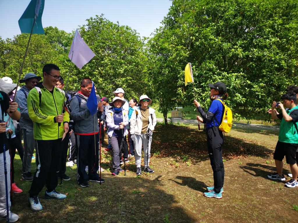 活动从宝界公园入口处出发,以大浮南村为终点,全程约6公里。出发前世界杯官网分工会委员郑飞云老师进行了热情洋溢的活动介绍,他希望参与人员发扬勇于挑战、团队协作的精神,通过户外运动得到身体上的锻炼、精神上的愉悦和意志上的历练。分工会委员周楠迪老师介绍了此次登山活动的比赛规则和安全提示,并强调了做好环保工作。方芳老师向大家介绍了登山杖的使用方法以及注意事项。随后,8支队伍在队长的带领下取好队名和口号,分工会副主席徐静老师为各队队长授旗,一声令下各队依次向山顶进发。