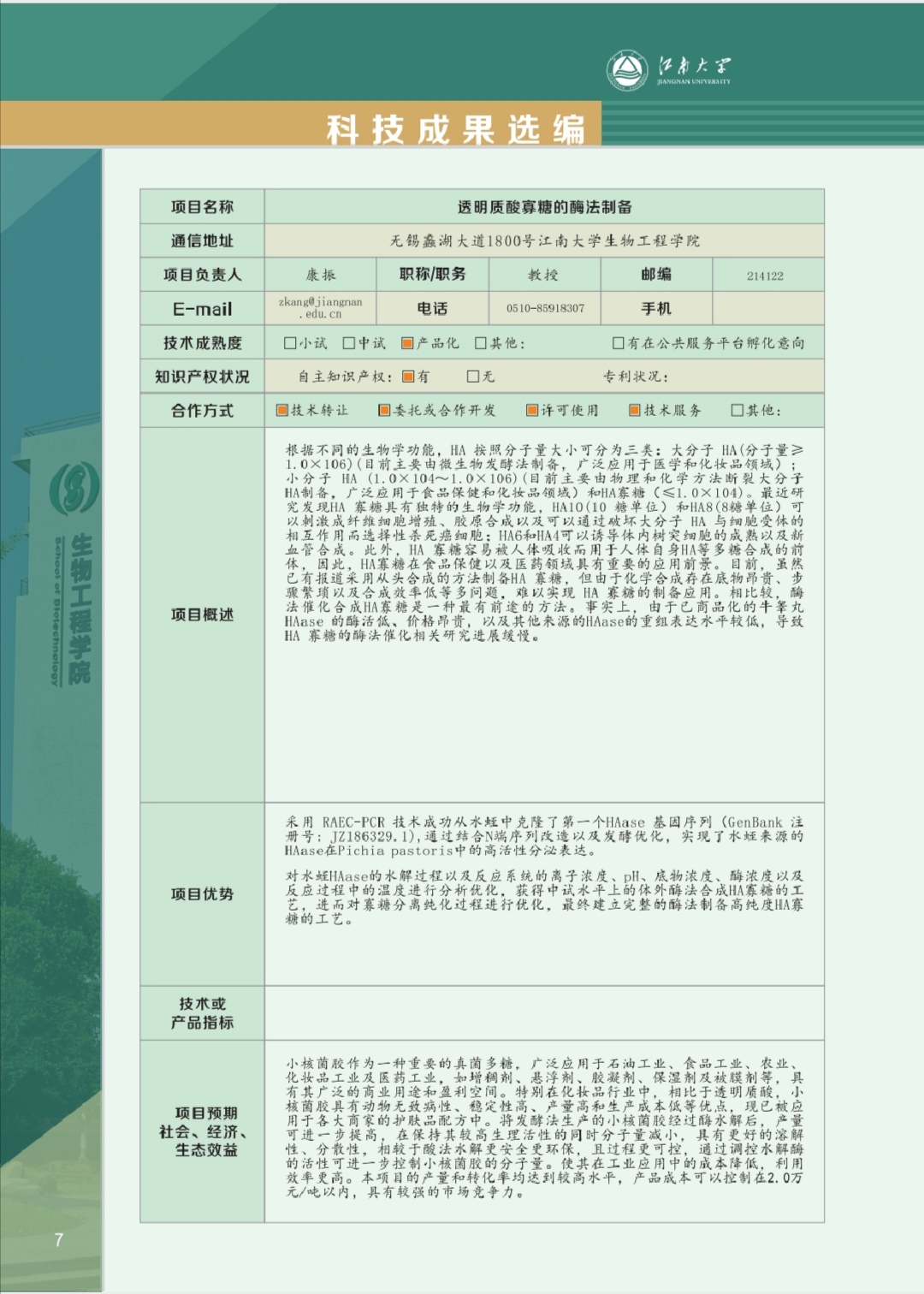 工业生物技术教育部重点实验室