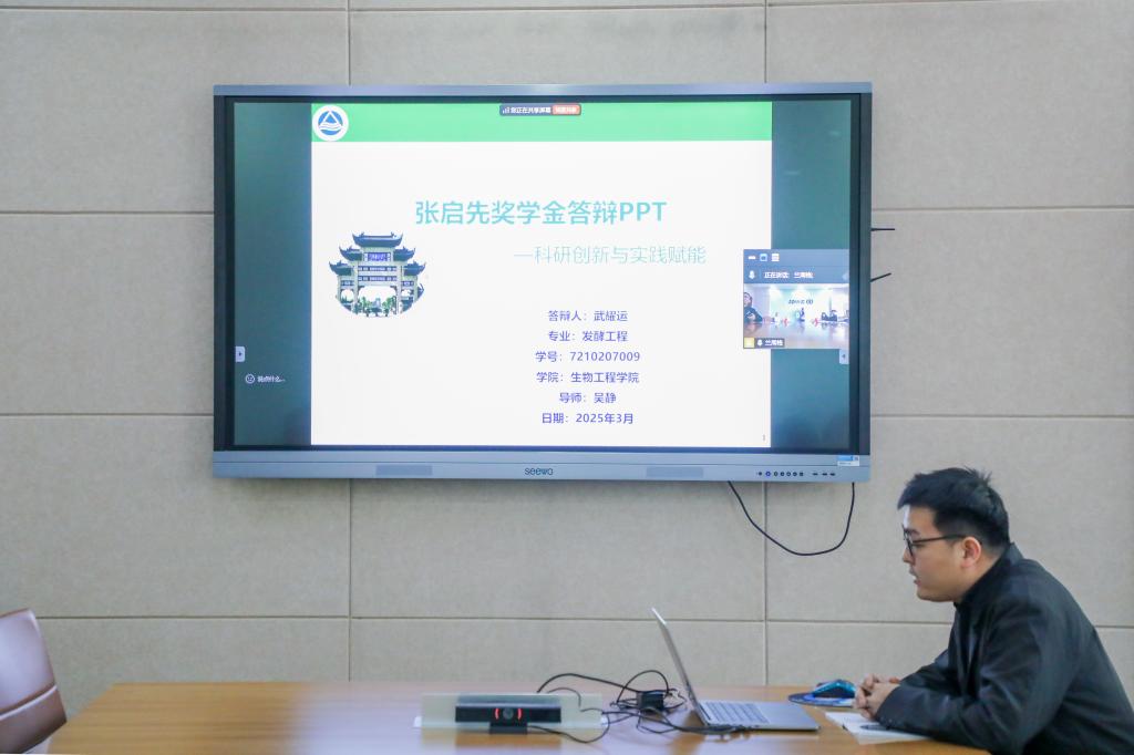 3月11日下午,世界杯官网举办第九届张启先奖学金评审答辩会。上海凯赛生物技术股份有限公司研发中心常务副主任徐敏、研发中心孙泽文博士、蔡萌萌博士,世界杯官网党委副书记兼副院长林丹、饶义剑教授、吴俊俊教授参加了奖学金答辩会,活动由辅导员张同舟主持。