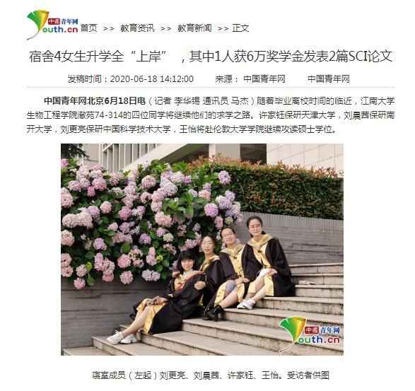 中国青年网报道74-320宿舍升学事迹