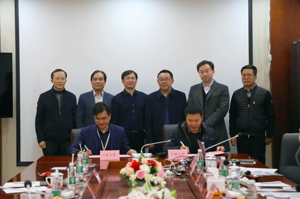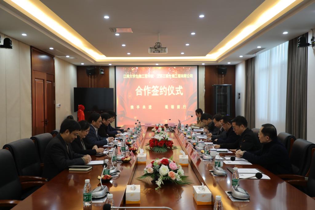 11月25日,世界杯官网党委书记王维、院长许正宏一行赴江苏三联生物工程股份有限公司进行考察交流并举行合作签约仪式。无锡空港经济开发区党工委书记陈伟良、江苏三联生物工程股份有限公司董事长施启尧等领导共同参加签约仪式,活动由江苏三联生物工程股份有限公司人事负责人冯燕主持。
