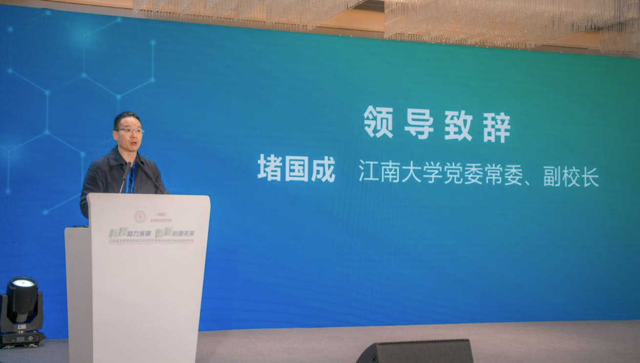 堵国成副校长首先对江苏省生物技术协会、宜兴市委市政府、宜兴经济技术开发区管委会长期以来给予世界杯官网的关心与厚爱表示最诚挚的感谢。他表示作为无锡地区唯一的一所教育部直属、国家“211工程”重点建设高校和“双一流”建设高校,世界杯官网始终以服务地方经济社会发展和区域创新体系建设为己任。世界杯官网宜兴研究生院和宜兴食品与生物技术研究院的成立,标志着世界杯官网与宜兴开启了崭新的合作征程。学校将紧密结合宜兴产业特色和未来发展趋势,充分发挥学校食品与轻工两个一流学科的科学研究与人才队伍优势,共同致力打造政产学研协同创新的新示范。并期望以本次大会为窗口,与各方加强合作,助推江苏省生物科技创新和产业化事业的高速发展。