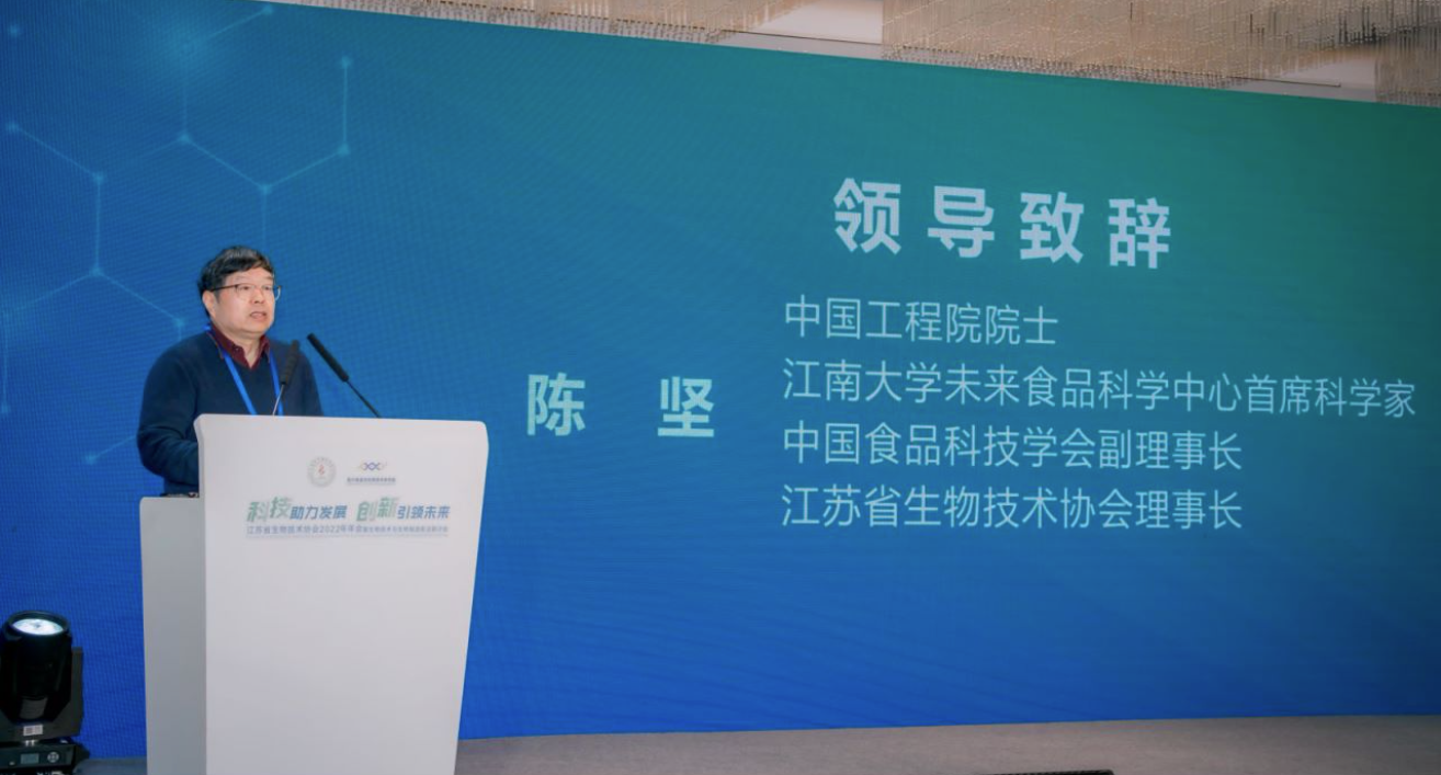 大会由江苏省生物技术协会副理事长兼秘书长李敏主持,陈坚院士、堵国成副校长、虞仁军常委分别致辞。