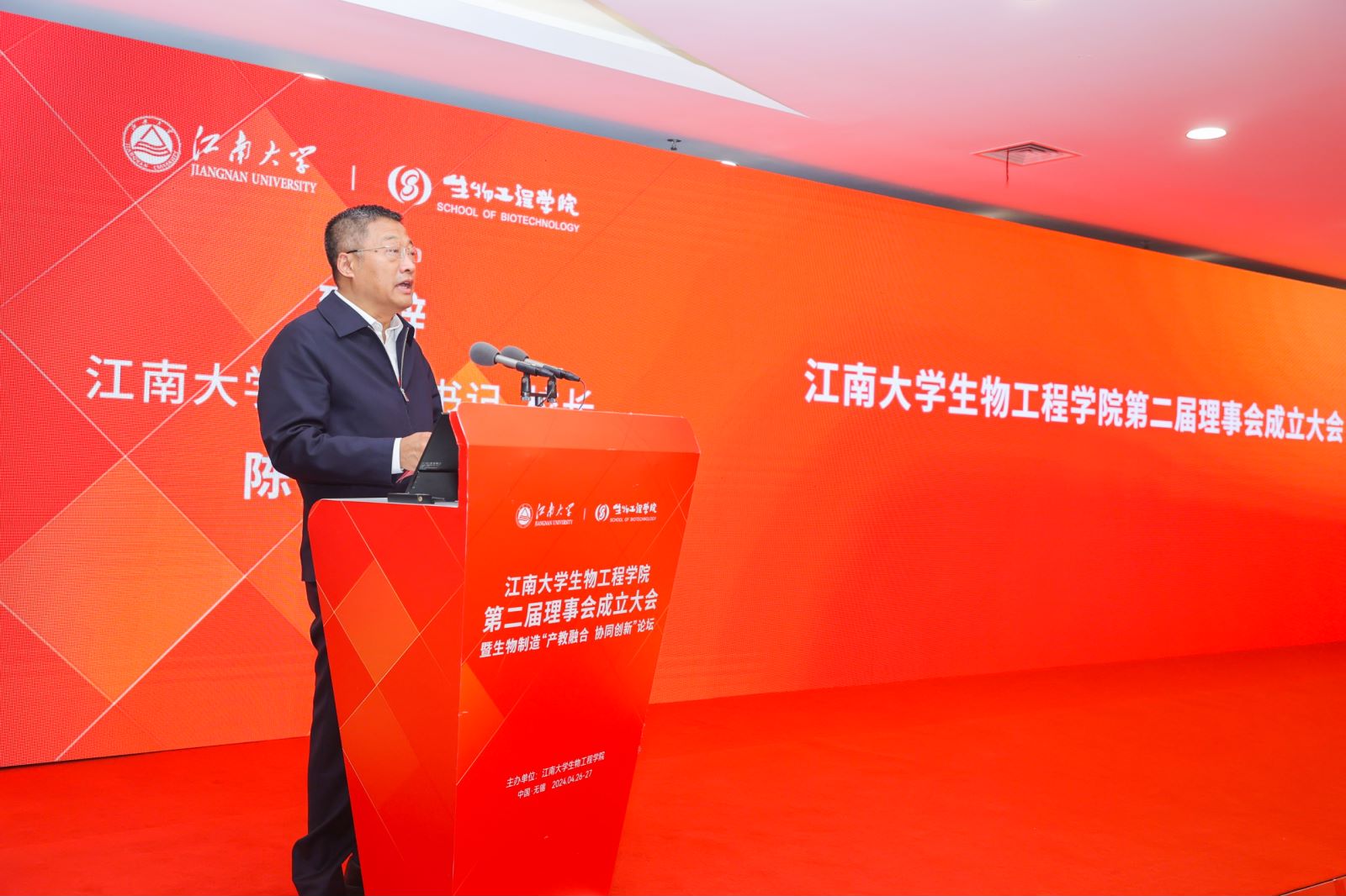 4月27日上午,世界杯官网第二届理事会成立大会暨生物制造“产教融合、协同创新”论坛在校图书馆五楼报告厅隆重召开。