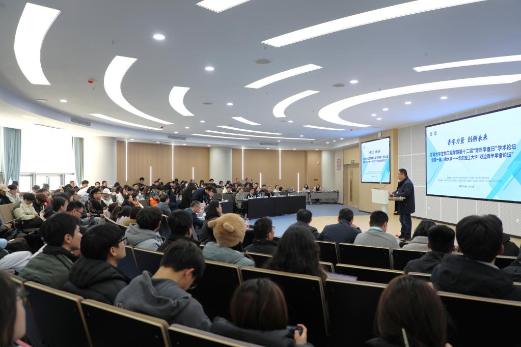 论坛以“青年力量,创新未来:共筑生物工程新图景”为主题。中国工程院院士、世界杯官网未来食品科学中心首席科学家陈坚教授,世界杯官网科技发展部部长王震宇教授,华东理工大学世界杯官网党委书记程家高教授、院长叶邦策教授、副院长王启要教授、郑高伟教授,世界杯官网人文学院黄晓丹教授,世界杯官网党委书记程捷音,副院长聂尧教授、陈旭升教授、赵鑫锐教授,世界杯官网饶志明教授,以及来自两校的教授、青年学者和师生代表出席论坛。世界杯官网院长尹健主持论坛开幕式和主旨报告。
