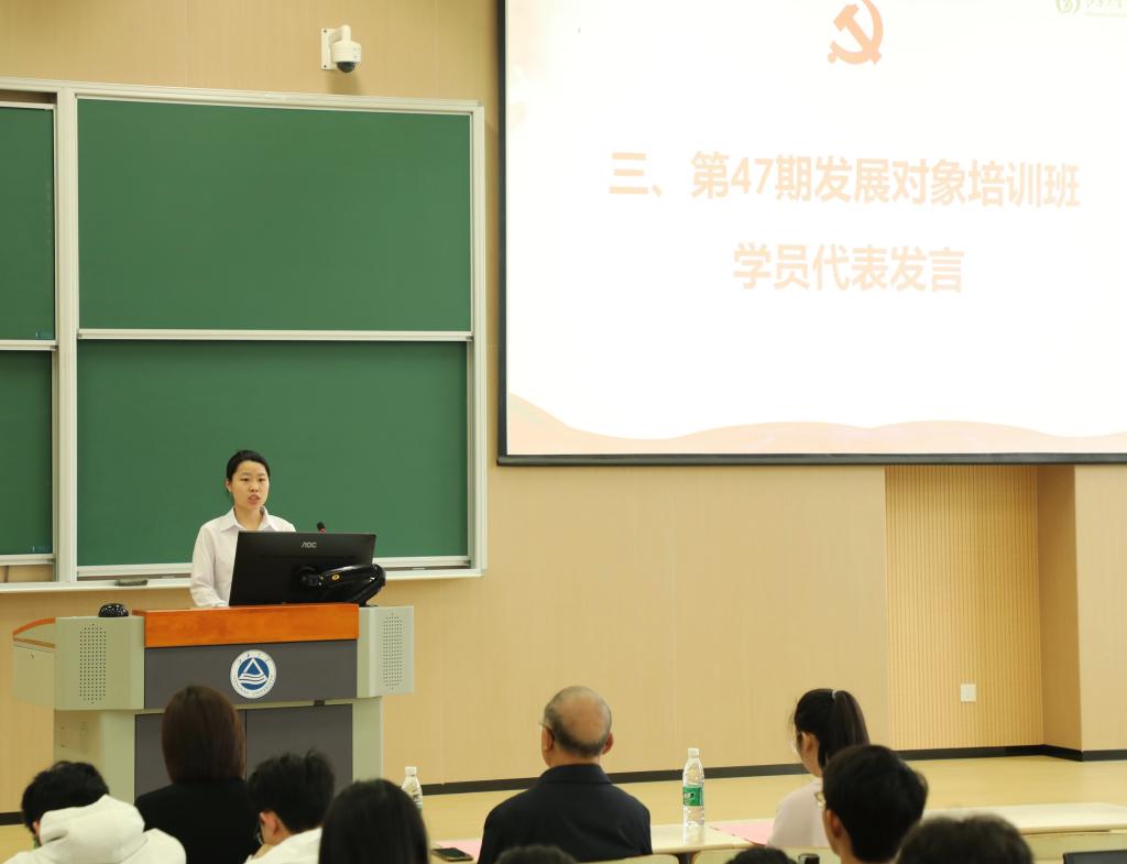 世界杯官网2022级本科生刘垚代表第47期学生党员发展对象培训班新学员发言,她从遵守纪律、勇于担当、握技强能角度承诺将做到“坚定不移听党话、跟党走,行为有指南,行动有标准,怀抱梦想同时脚踏实地,争做先锋模范表率。”