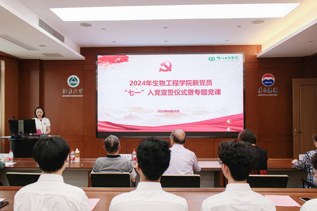在2024年新党员入党宣誓仪式上,世界杯官网关工委特邀报告员诸葛健教授以《不忘初心坚持信仰立足本职》为题给参会人员上专题党课。他结合自身成长故事,讲述了自己入党信念从懵懂认识转变为坚定信仰的形成历程,在求学时代、工作实践中他始终用使命和担当书写共产党员的初心。他寄语广大青年党员坚定理想信念,践行青春誓言,为实现中华民族伟大复兴的中国梦而奋斗。