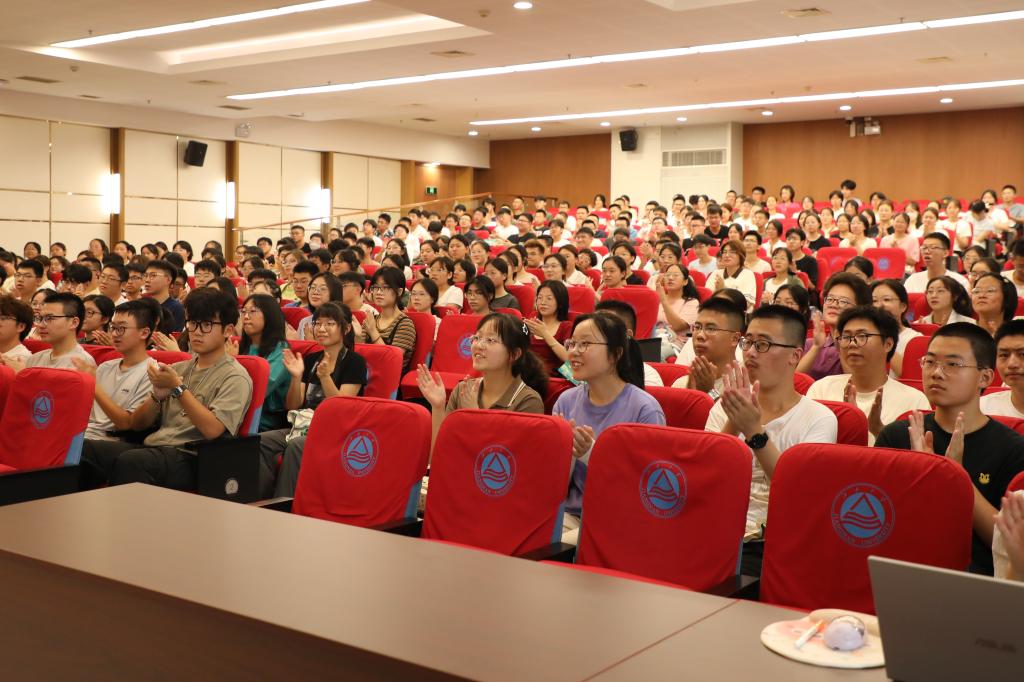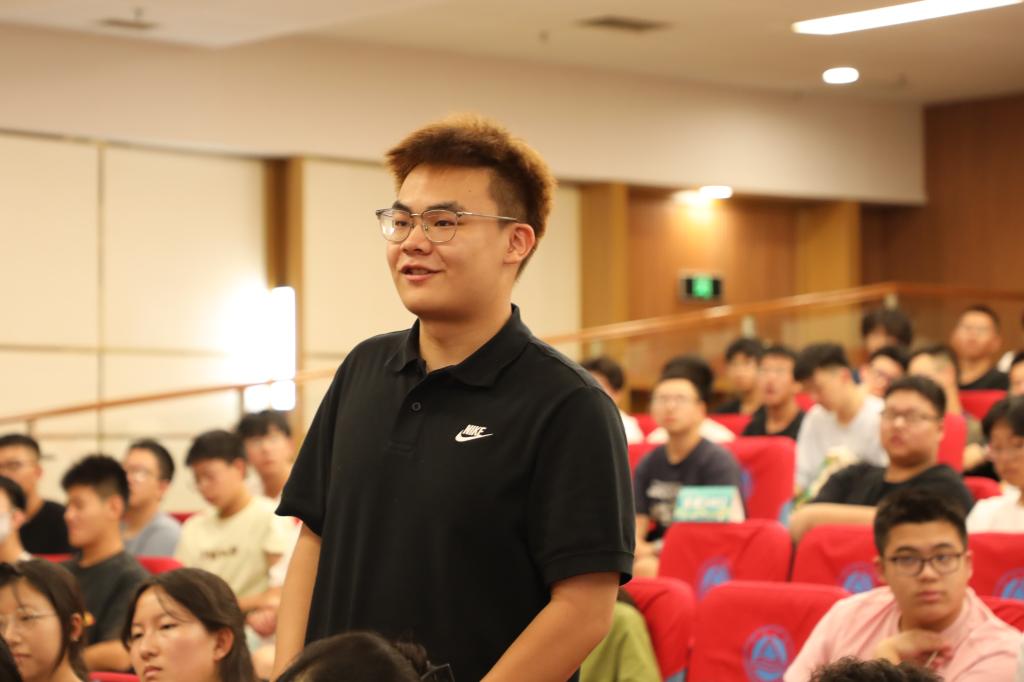 在自由交流环节中,2024级本科新生代表们满怀憧憬与好奇,就如何科学规划大学生活、平衡学习与成长等话题,与陶教授展开了热烈而深入的对话。陶教授以他深厚的学识与丰富的人生阅历,耐心且细致地解答了同学们的每一个疑问,不仅提供了宝贵的建议,更寄予了厚望。他鼓励同学们要夯实专业基础,勇于探索未知,不断提升实践能力,同时学会深度思考,培养批判性思维,为未来的挑战做好充分准备。